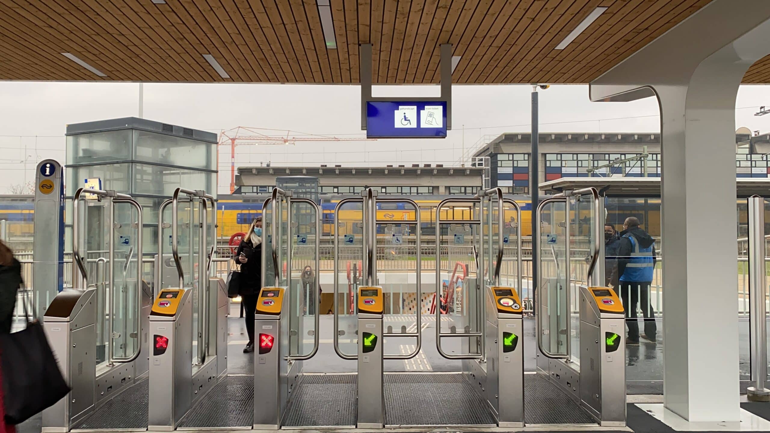 Heel wat Nederlandse treinstations zijn intussen uitgerust met toegangspoortjes. Zonder geldig ticket kom je er dus niet in. Je opent het poortje door je bankkaart, de OV-chipkaart of de QR-code van je treinticket te scannen. Je doet dit zowel bij het betreden als bij het verlaten van het station. Bij overstappen tussen twee treinen hoef je meestal niet door de poortjes heen te gaan. Schiphol Airport is maar één van de weinige grote stations zonder toegangspoortjes.